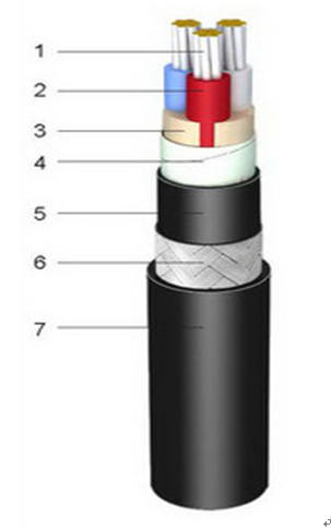 交聯聚乙烯絕緣聚烴烯內護套鍍鋅鋼絲編織鎧裝聚烴烯外護套船用電力電纜 |